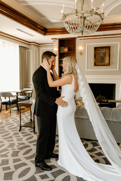 A first look give both of you a moment to cry without the audience of all your wedding guests. You can get all your tears out knowing you'll have time to freshen up before pictures too.